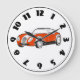 Sports cars come in all sorts of styles and have changed a lot over the years. This design is really cool as it’s of a more vintage sports car. The car is mostly red with a white stripe down the bonnet. This sports car design looks great on this clock. Perfect for yourself or as a gift