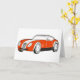 Sports cars come in all sorts of styles and have changed a lot over the years. This design is really cool as it’s of a more vintage sports car. The car is mostly red with a white stripe down the bonnet. This sports car design looks great on these greeting cards