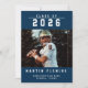 Celebrate your graduate’s big achievement with this bold and sporty Class of 2026 graduation announcement card, featuring a personalized football player photo and clean varsity-style typography.