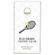 Custom Tennis Sports Club Cornhole Beanbag Toss Game Boards with a simple racket and ball logo and personalized text, a perfect added activity at a tennis or swim club, shown in black and white and gray with editable colors and fonts.