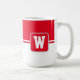 Coffee mug is shown here with a color block style print with a sample letter, customize and change colors and letter or buy as is.