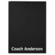 This clipboard is black. You can customize the clipboard with a coach's name or other text. The text is white.