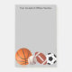 Cool large modern sports theme sticky note pads designed with a graphic image of a basketball, baseball, football, and soccer ball with from the desk of template you can personalize with your name or business name. Created for a sports coach, college or high school sports player scout recruiter, or just a cool way to stay in touch and keep notes in your office or home office.