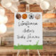 this is a sports themed baby shower welcome sign. It included a football, basketball, soccer, and baseball.