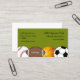 Sports themed business card with baseball, football, basketball and soccer ball on green background. Great choice for coaches or any sporting goods related businesses or organizations.Graphics©http://www.delightful-doodles.com/
