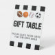 This is a sports themed Gift table sign. It includes a football, baseball, basketball, and soccer.