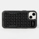 This smart iPhone case can be personalized with your chosen initials. The design has a repeating pattern of stars and sports trophies on a black background.