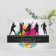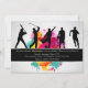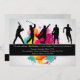 The perfect invitation for a sportsman-enthusiast of any age. The card features five silhouettes playing baseball, golf, soccer, basketball and running. A splash of bright colors creates the background.