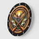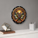 Celebrate the call of the wild with the Sportsman’s Heritage Trophy clock. This ruggedly elegant timepiece features a high-definition graphic centered on a majestic 10-point buck, flanked by two leaping largemouth bass against a golden sunset. The focal point is grounded by crossed vintage-style rifles, symbolizing the tradition of the great outdoors. The entire scene is set within a multi-layered circular frame that masterfully replicates the texture of thick, weathered nautical rope and polished dark wood. While the artwork captures the dimensional relief of hand-carved elements and natural fibers, this is a durable high-definition graphic application on a premium round clock face. It serves as a prestigious and masculine centerpiece, perfect for a hunting lodge, lakeside cabin, or private den.