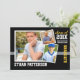 Plain white envelopes are included with paper invitations and will come to fit the invitation size you select. If you don’t need the envelopes, you may choose to not receive them by selecting the dropdown below "Envelopes" and choosing "None." If you’d like to have a design on your envelopes, you can browse all of these available envelopes to find the design that complements your Sporty 3 Photo Graduation Announcement Black Gold.