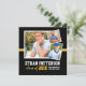 Yes, you can print on the back of your invitation for free! Most designs already have a corresponding design on the back that can be personalized using the Design Tool and going to Layers. This is a great way to communicate more information or further personalize your Sporty 3 Photo Graduation Announcement Black Gold. The option is really up to you.