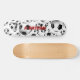 This cool soccer themed skate deck features a pattern of black and white soccer balls of varying sizes on a customizable white background - name can be customized - by katz_d_zynes
