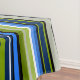 Sporty blue, green, navy, black, gray and white striped tableclotch