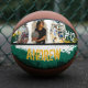 Unique personalized basketball photo keepsake for your All-Star basketball player. Our design features a rustic gunge-style design with green and yellow grunge textures and photo frames. Personalize with three of your favorite photos along with the name and player's jersey number. Design by Moodthology Papery.
