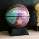 Unique personalized basketball keepsake for your All-Star basketball player. Our design features a rustic gunge-style design with teal blue, purple, and orange grunge textures. Personalize with the name and player's jersey number. Design by Moodthology Papery. Makes a great gift for birthdays sports team memorabilia and to honor your kid's sports achievements, Etc.