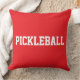 Sporty Fun White PICKLEBALL Text On Bright Red Throw Pillow
