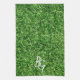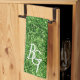 Sporty Green Grass Background Monogram Initials Kitchen Towel