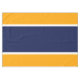 This fun sporty design features a bold navy blue center stripe highlighted with slender white stripes against a bright yellow orange background.