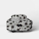 This digitalized, graphic design, of black spots, with brown edges-is patterned against, an embossed, silver, and black, background.