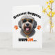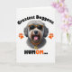 This design shows a shaggy-coated dog’s head centered on a bright white background, giving it an easygoing, friendly presence ❤️. The fur shifts from deep gray into warmer brown around the muzzle, and the mouth sits slightly open with a small pink tongue showing, like it’s happily trotting alongside someone it adores. Oversized sunglasses cover the eyes, featuring an orange-and-black spotted pattern that feels like a fun nod to a close companion’s shared style. The same spotted pattern appears on a collar, where a gold-toned bone-shaped tag catches the light like a tiny keepsake. On both sides of the portrait, orange paw prints sit in a balanced arrangement, adding a cozy, togetherness feel 🌼. Black lettering is placed in an arch above the dog and in a straight line beneath it, with an orange handprint worked into the lower line to suggest a gentle, caring connection. The sunglasses are a bright orange-and-black spotted design, and the collar repeats that pattern just below the chin.