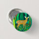 Button in a stylized illustration of a cute, spotted fawn in a fairytale forest setting, surrounded by trees and plants, in shades of brown and green