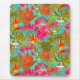 Fun Vibrant colorful mouse pad. This design is fun with leopard eyes and print in the background to the lush colorful Bird of Paradise and Cana Flowers and tropical leaves.