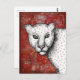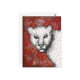 Spotted Leopard Says Hey features a white leopard with taupe spots and green eyes over a textured red background.