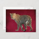 A beautiful spotted leopard with intense yellow eyes. Set on a regal red background.