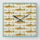 Small wall clock with trout fishing theme. Spotted trout and fishing flies background is perfect for the home office or man cave of a fisherman.
