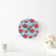 Spotty Red Teapot and Cups Blue Pattern Round Clock