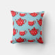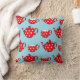 Spotty Red Teapot and Cups Blue Pattern Throw Pillow