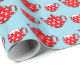 Spotty Red Teapot and Cups Blue Pattern Wrapping Paper