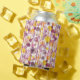 Seamless white pattern with large and small translucent purple orange and yellow balls and strips (vector EPS 10) © and ® Bigstock® - All Rights Reserved.