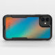 Blue, blue-green, orange and bronze-brown lines appear to be spray painted on this OtterBox iPhoneCase. Beautiful and colorful!
