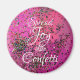 A blast of colorful confetti sprinkled all over shades ona magenta backdrop. Fun festive vibes where you can personalize it in the middle with a phrase, logo or name or just keep it as is with the text, "Spread joy like confetti" creating an uplifting positive theme.
