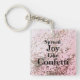 On this stylish keychain are various shades of confetti on a pink champagne pastel backdrop where in the center is a pink square where you can customize it with a letter and name or keep it as is with the phrase "spread joy like confetti" creating an uplifting postive theme. Elegant chic girly vibes.