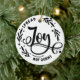 A gentle reminder to spread joy and maintain your social distancing during the holiday season. This black and white farmhouse style ornament features the word Joy in beautiful black hand lettering calligraphy. The words spread and not germs are in all caps and are curved to fit along the outer edge of the ornament. On the back of the ornament is a place to add a greeting and a date. This would make a great gift for a health care worker.