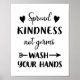 Spread Kindness Not Germs Wash Your Hands Bathroom Poster