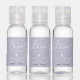 NewParkLane - Sophisticated personalized wedding hand sanitizers, with fun quote 'Spread love, not germs' in elegant script typography /calligraphy with swirls, a cute tiny heart, and a dotted round frame, against a lavender background.