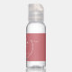 NewParkLane - Sophisticated personalized wedding hand sanitizers, with fun quote 'Spread love, not germs' in elegant script typography /calligraphy with swirls, a cute tiny heart, and a dotted round frame, against a coral pink background.