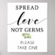 Spread love not germs sign for weddings, parties, bridal showers, baby showers as well as forrestaurant, office, coffee shop, salon...