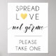 Spread love not germs sign for weddings, parties, bridal showers, baby showers as well as forrestaurant, office, coffee shop, salon...