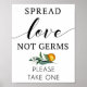 Spread love not germs sign for weddings, parties, bridal showers, baby showers as well as forrestaurant, office, coffee shop, salon...