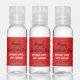 Perfect for Valentines Day. This design has two panels on the sides with a white background and a pattern of red, outlined hearts. In the center a red panel with a pattern of dark red hearts. The text reads, "Happy Valentines Day. Spread Love Not Germs." All text can be customized. Great for gifts, favors, and businesses. Sanitizer has a fresh, light citrus scent. Great for gifts, favors, gift bags and Christmas stockings. Sold in sets of 12 bottles.