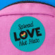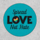 LGBTQ Pride minimalist patch featuring the wording Spread Love not Hate in modern black lettering decorated with a lovely rainbow heart.