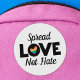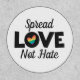 LGBTQ Pride minimalist patch featuring the wording "Spread Love not Hate" in modern black lettering decorated with a lovely rainbow heart.