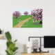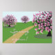 Beautiful spring image of flowering trees, on a decorative vector art poster.