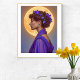 This Mucha-inspired lady’s portrait captures the spirit of spring through a dreamy, feminine lens. Shown in graceful profile, the pensive woman is framed by a glowing full moon rendered in warm golden tones. She wears a purple dress and shawl, adorned with matching spring blossoms woven into her hair. Rich in symbolism and soft mysticism, the artwork evokes the timeless elegance of the Belle Époque, blending floral beauty, moonlight, and Art Nouveau romance. Perfect as a poster for bedrooms, living spaces, studios, or any interior that embraces poetic, feminine, and artistic decor.