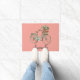 Your name on the doormat, pink background with the watercolor illustration of a spring biclycle green with apples in a basket.