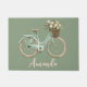 Your name on the doormat, green background with the watercolor illustration of a spring biclycle green and pink